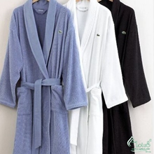 Áo choàng tắm khách sạn được dệt từ chất liệu 100% Cotton waffle. Waffle là chất liệu cotton cổ điển, sang trọng nhưng không kém phần mềm mịn, thấm hút tốt, tạo cảm giác thoải mái cho người sử dụng. Sợi bông được xén gọn mịn màng tạo cảm giác cực kỳ thoải mái cho người sử dụng. Áo tắm có thể được dệt logo bằng chỉ mầu trước ngực (như hình trên) theo yêu cầu của Khách hàng.