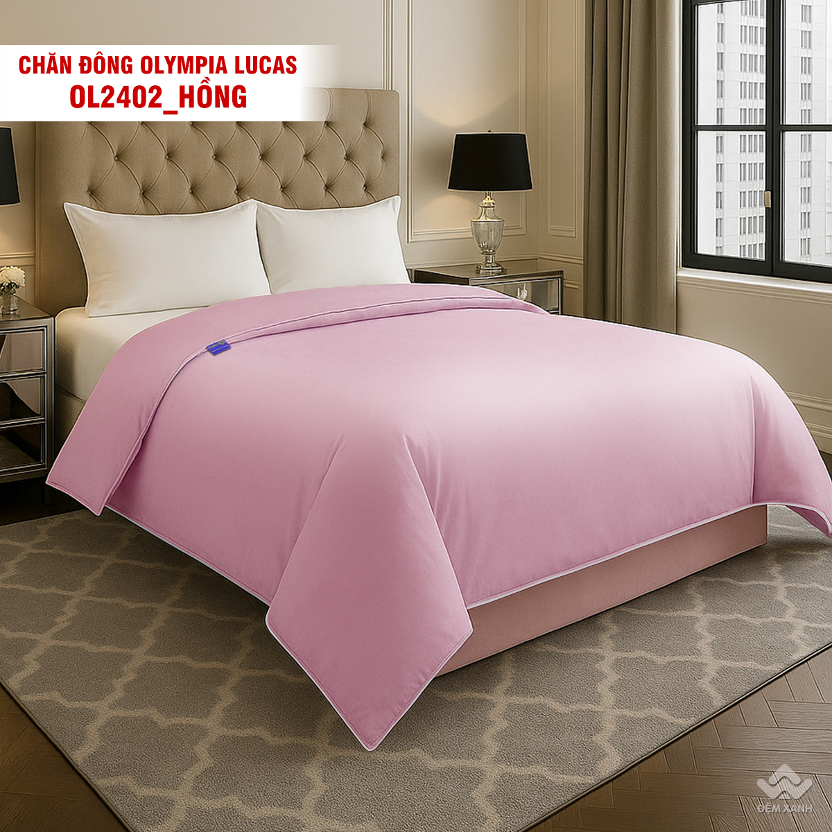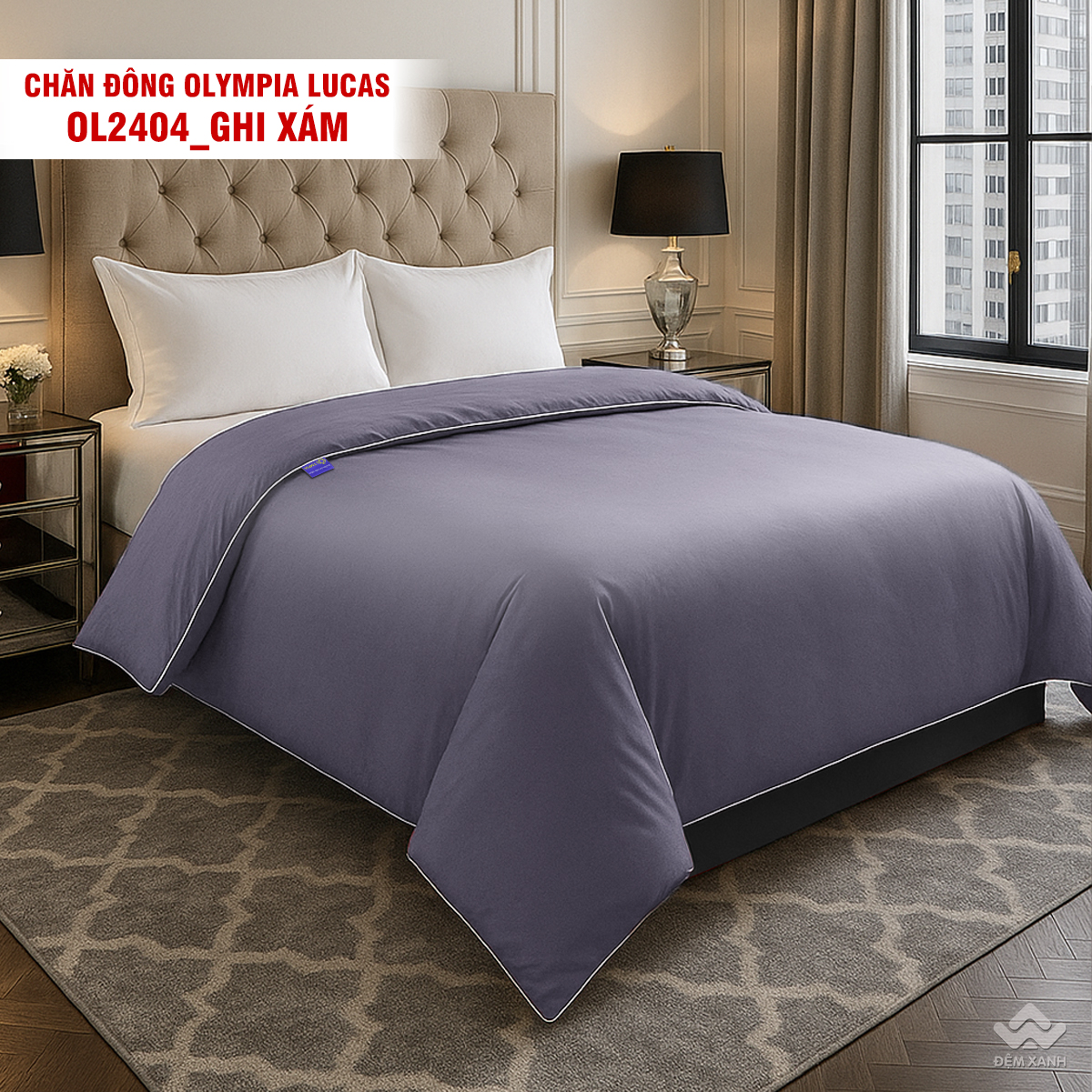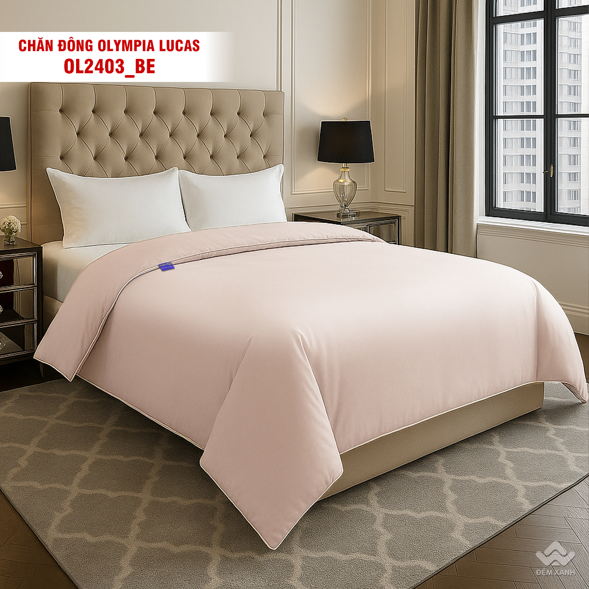 • Chăn đông Olympia Lucas được thiết kế đơn sắc 1 màu dễ phối nội thất.
