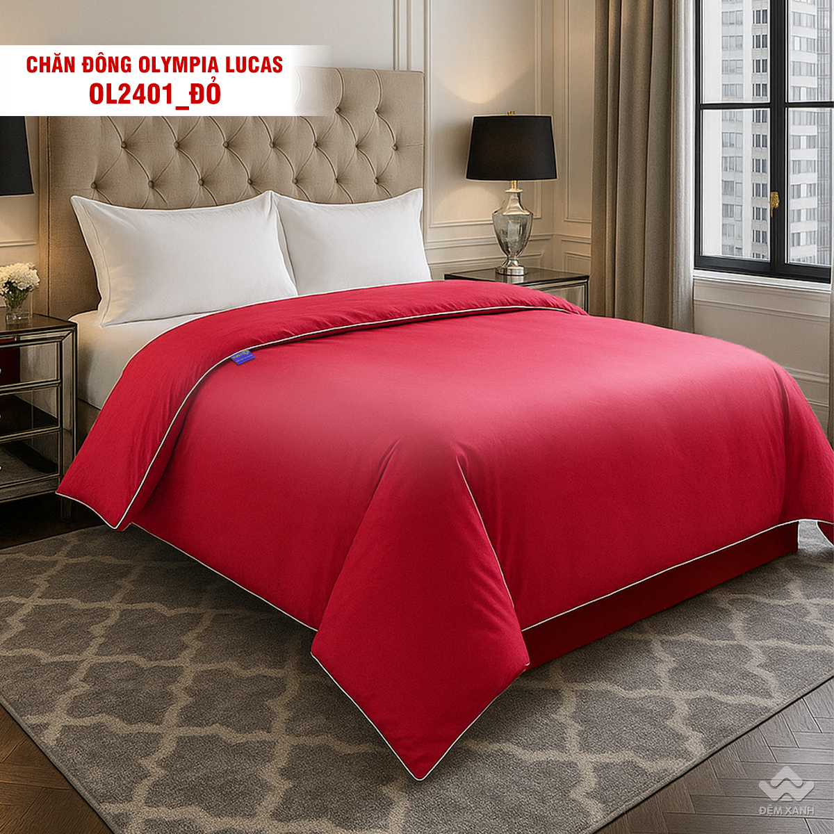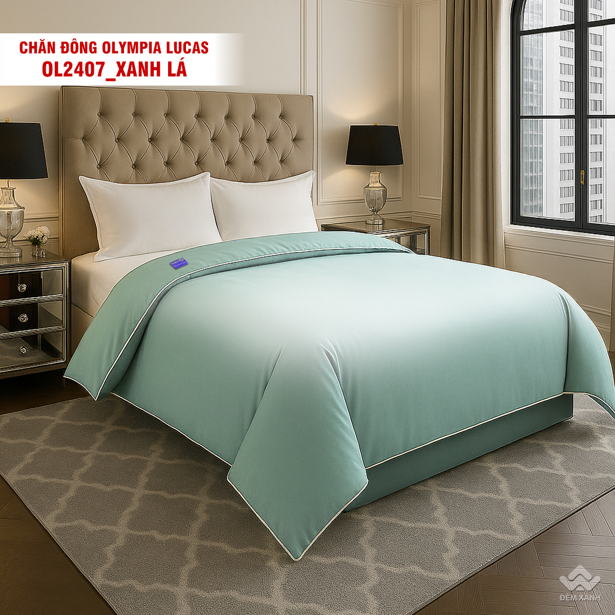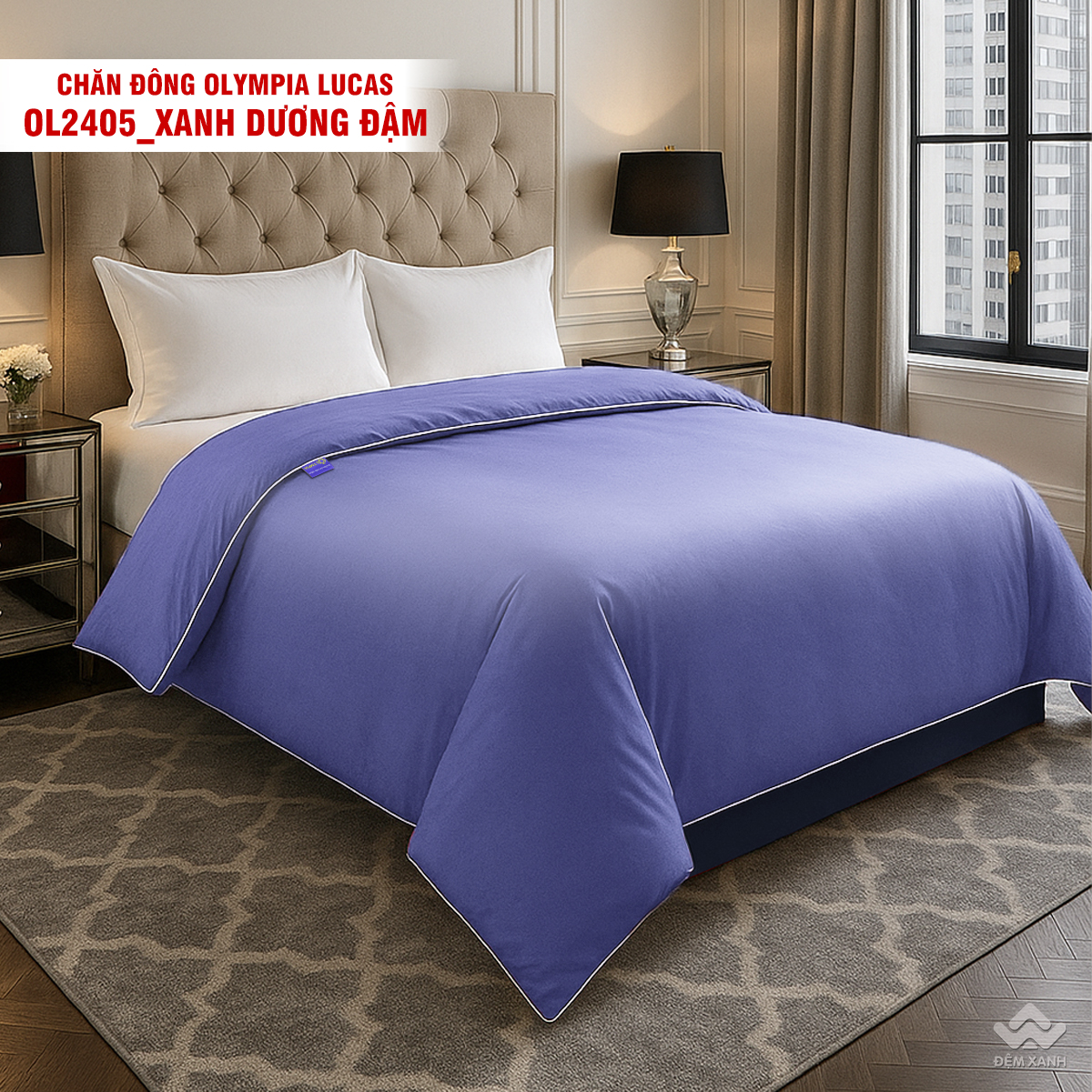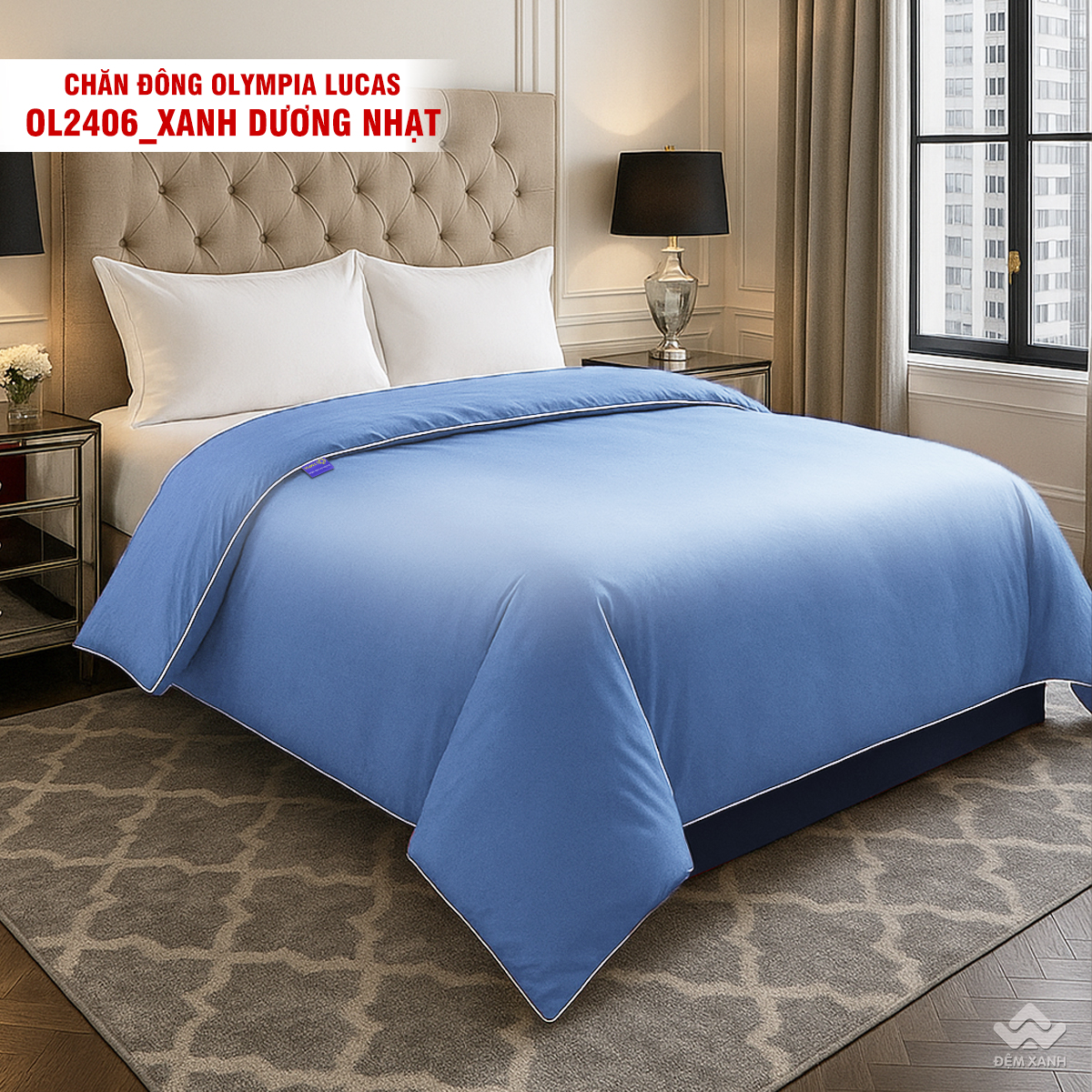 • Chăn đông Olympia Lucas được thiết kế đơn sắc 1 màu dễ phối nội thất.